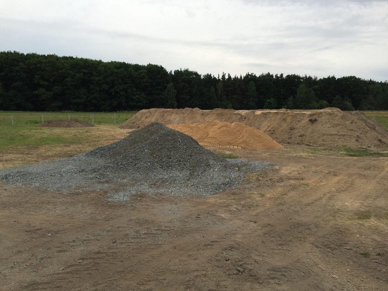 2016 änderte sich dies auch noch nicht. Die Fläche blieb Baustofflager und das Einzige was sich änderte waren die Größen und Formen der einzelnen Haufen. Schotter und Kies wurden als Baumaterial verwendet und Oberboden wurde an anderer Stelle abgetragen und im Hinterland gelagert.